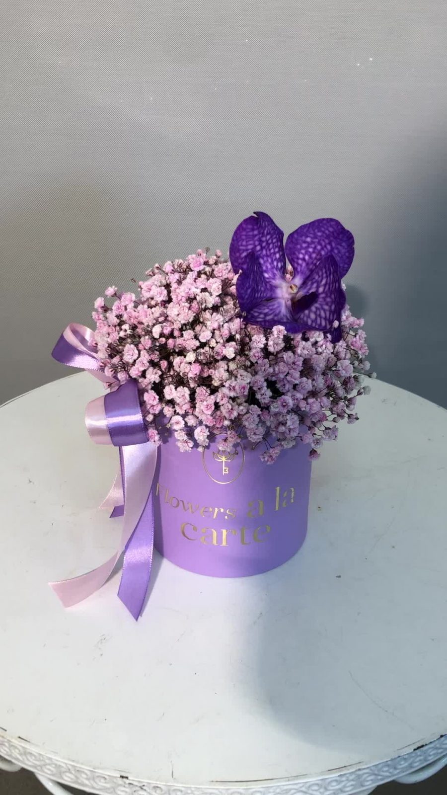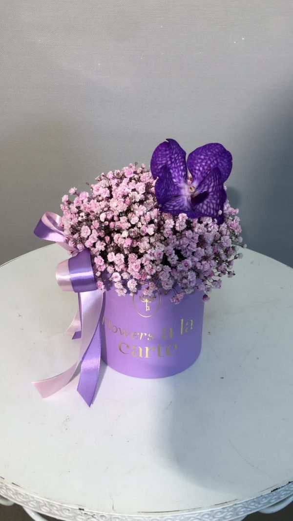 Гипсофила и орхидея Ванда в коробке S в Томмоте